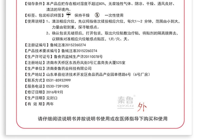 | 作用機理 | 清潔相應(yīng)穴位,確認包裝無破損后,打開包裝,取出穴位貼敷治療貼,將貼劑的隔離膜撕去,以鋼珠對準(zhǔn)相應(yīng)穴位敏感點貼壓,1片/穴、天。 |