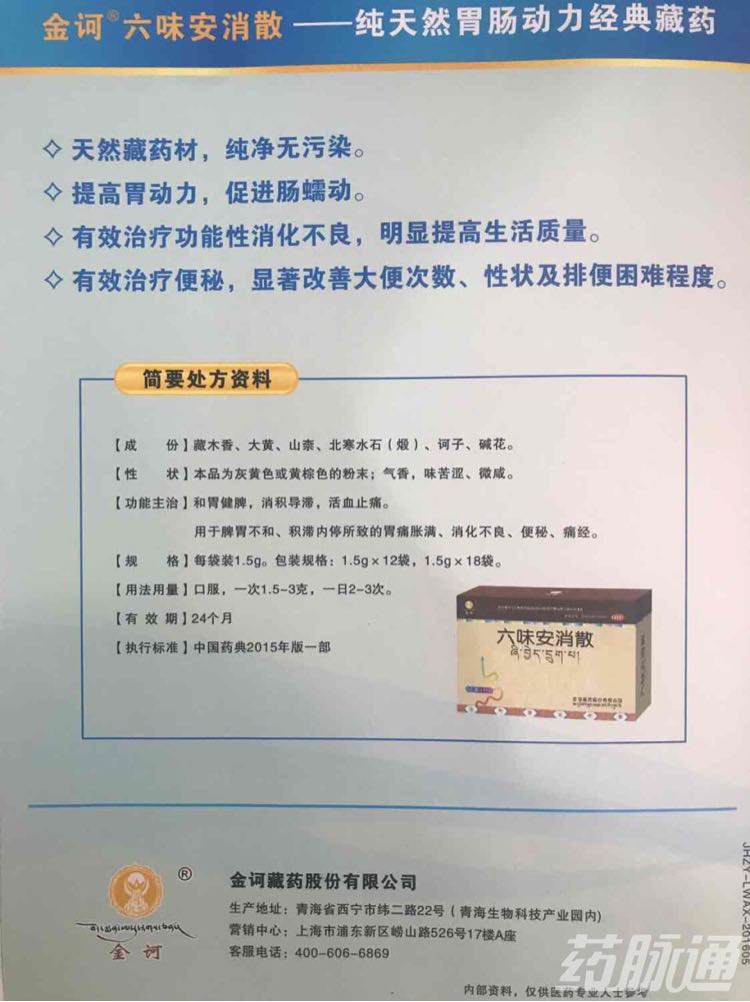 通用名稱: 六味安消散