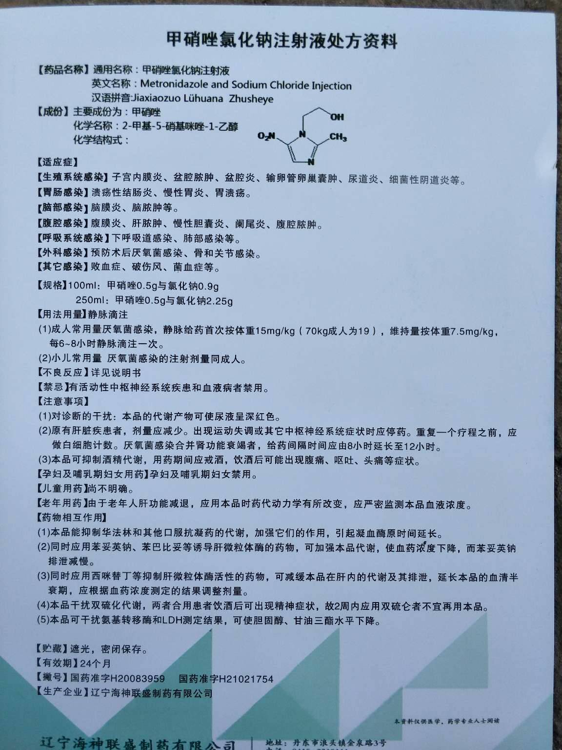 通用名稱(chēng):甲硝唑氯化鈉注射液