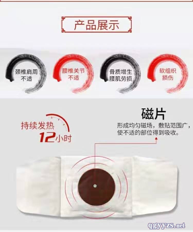 | 主要成分 | 該產(chǎn)品由遠(yuǎn)紅外陶瓷粉的無(wú)紡布、永磁片、發(fā)熱袋、壓敏膠及硅油紙組成。 |