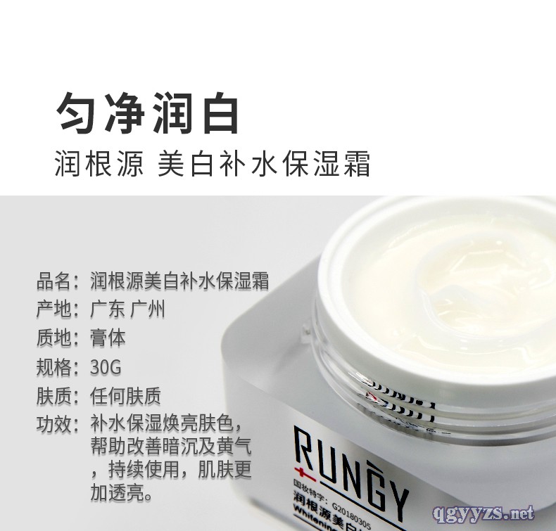 產(chǎn)品名稱: 潤(rùn)根源美白補(bǔ)水保濕霜(G20180315)