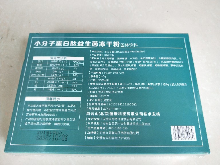 | 補(bǔ)充說明 | 無水葡萄糖,低聚果糖,水蘇糖,魚膠原蛋白肽,水解膠原蛋白肽,牛骨膠原蛋白肽,鼠李糖乳桿菌,乳雙岐桿菌,保加利亞乳桿菌,嗜酸乳桿菌,嗜熱鏈球菌,羅伊氏乳桿菌,葡萄糖酸鈣,乳酸亞鐵,葡萄糖酸鋅 |