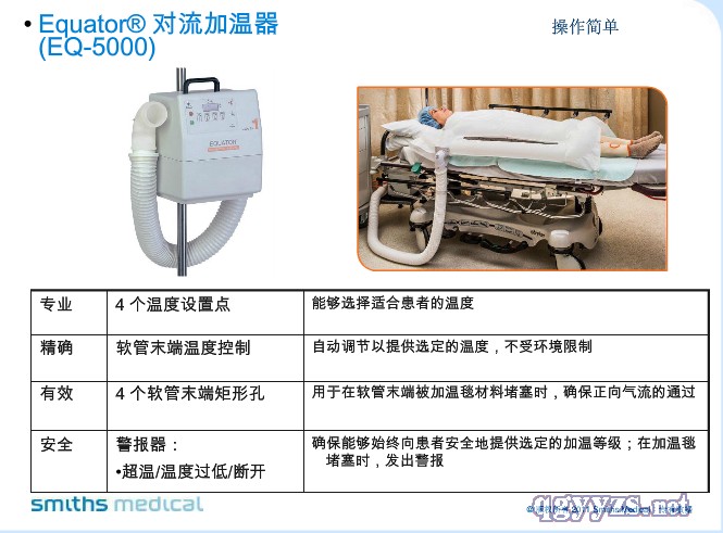 | 產(chǎn)品用途 | **。使用便捷。EEQUATOR®對(duì)流加溫系統(tǒng)設(shè)計(jì)簡(jiǎn)潔,具有可控的對(duì)流加溫功能。本產(chǎn)品擁有專利溫控系統(tǒng)能確保滿足治療所需的設(shè)置,高性能空氣過濾網(wǎng)將熱量分散至溫毯各個(gè)部分。SnuggleWarm®溫毯柔軟、有彈性、耐用,適用于**臨床應(yīng)用,包括**治療中的部分或全身加溫。 |