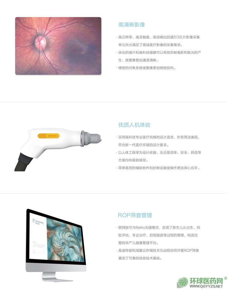 | 作用機理 | 一種用于視網膜檢查的設備,它采用電腦圖像采集軟件,配合130度廣角鏡頭,可實時采集眼底(包括視神經、視網膜)和眼前段(包括角膜、前房角、虹膜和晶狀體)的動態(tài)和靜態(tài)圖像。特別適合于為早產兒、新生兒視網膜疾病篩查。 |