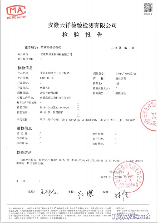 產(chǎn)品名稱: 牛初乳咀嚼片
