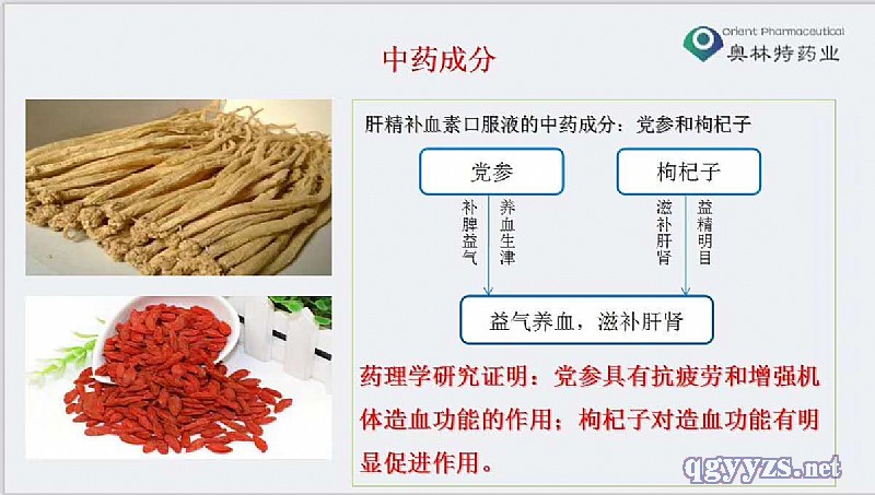 | 主要成分 | 肝精膏、黨參、枸杞子、枸櫞酸鐵銨、維生素B1 |