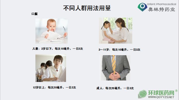 | 用法用量 | 口服,兒童:3歲以下,一次10毫升,一日2次;3~11歲,一次10毫升,一日3次;12歲以上,每次20毫升,一日2次;成人:每次20毫升,一日3次。 |