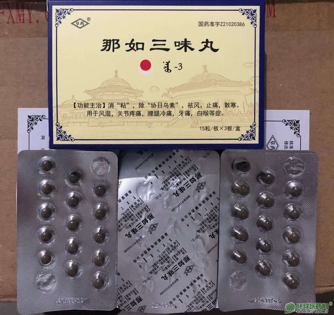 | 主要成分 | 那如三味丸,中成藥名。由制草烏、訶子、蓽拔組成。性狀本品為紅色水丸,除去包衣顯棕黃色;味微酸,辛麻。 |