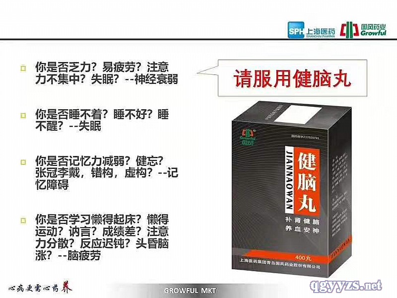 | 補充說明 | 健腦丸配方起源于青島**中醫(yī)世家王春莆之****方劑,始于清代康熙年間,由酸棗仁、當(dāng)歸、肉蓯蓉、山藥、天麻等19味中藥成分組成,配方嚴(yán)謹(jǐn)、組方科學(xué);1959年開始生產(chǎn)并主要出口海外,實現(xiàn)了傳統(tǒng)制丸工藝與古老配方的完美結(jié)合。由于國內(nèi)對該藥的廣泛需求,經(jīng)青島市衛(wèi)生局1967年8月4日批準(zhǔn)內(nèi)銷生產(chǎn),并于1981年被《山東省藥品標(biāo)準(zhǔn)》收載。1984年升級為省標(biāo);1994年1月20日成為國家中藥保護品種;2010年進(jìn)入中國藥典一部。是國風(fēng)藥業(yè)的優(yōu)質(zhì)專利品種。曾獲得中國藥學(xué)會老年藥學(xué)研究會“延齡”杯金杯獎,山東省醫(yī)藥管理局科技進(jìn)步一等獎等獎項。 治療失眠,*少服用1個月;治療記憶力減退及早老性癡呆至少服用4個月(3個月為機體細(xì)胞修復(fù)期,1個月鞏固期)。也可作為長期調(diào)理機體的滋補保健使用。 |