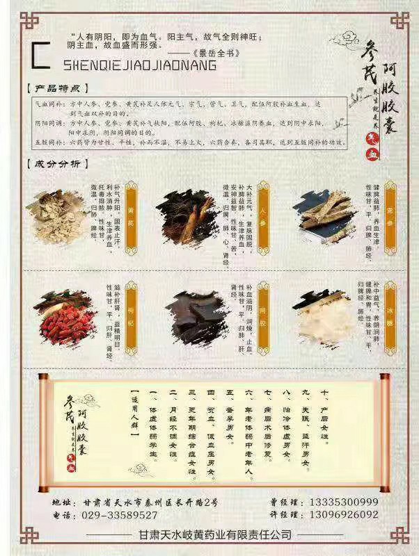 | 產(chǎn)品賣點 | 方中人參,黨參,黃芪補足人體元氣,宗氣,衛(wèi)氣,配伍阿膠補血生血,達到氣血雙補的目的 |