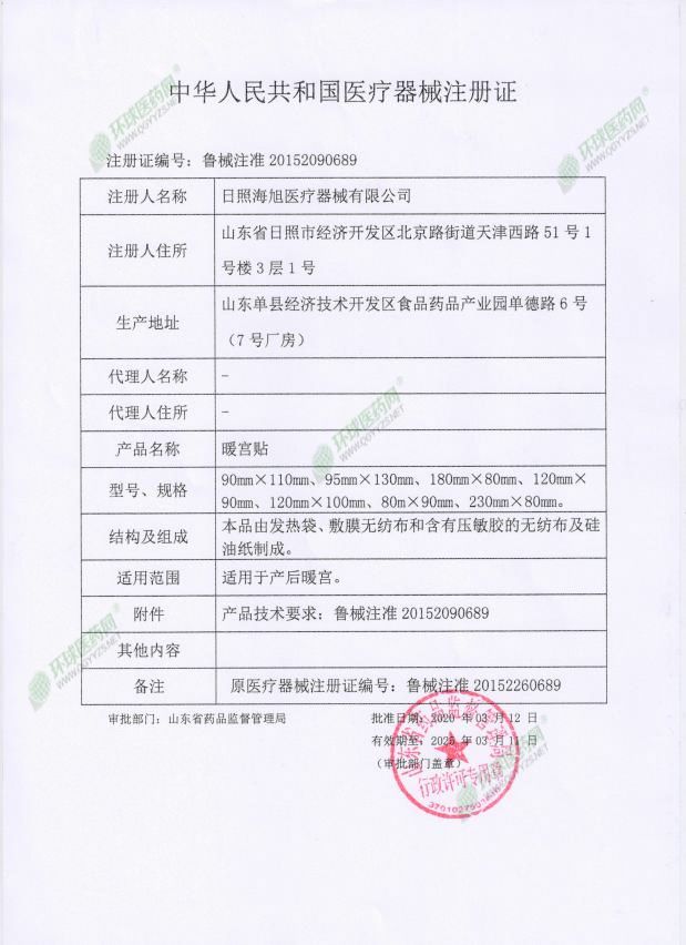| 補充說明 | 全國暖宮貼廠家免費提供文號:魯械注準20152260689 暖宮貼的作用 1、產(chǎn)婦暖宮,阻止體外寒邪之氣對產(chǎn)婦的侵害,加快惡露排出,保護產(chǎn)婦**度過月子期; 2、流產(chǎn)暖宮,促使產(chǎn)后子宮及血管盡快恢復(fù)正常的收縮規(guī)律,促進子宮復(fù)舊; 3、女性月經(jīng)周期疼痛的治療。 |