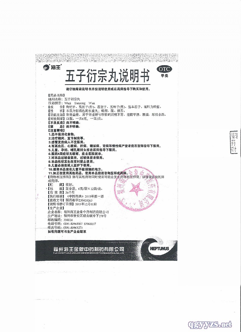 | 主要成分 | 枸杞子,菟tu絲子(炒),覆盆子,五味子(蒸),車前子(鹽炒) |