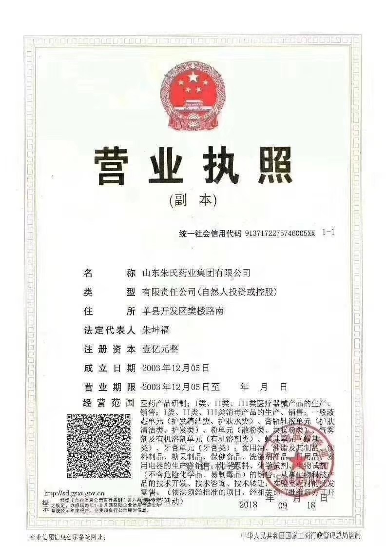 生產(chǎn)企業(yè): 山東朱氏藥業(yè)集團(tuán)