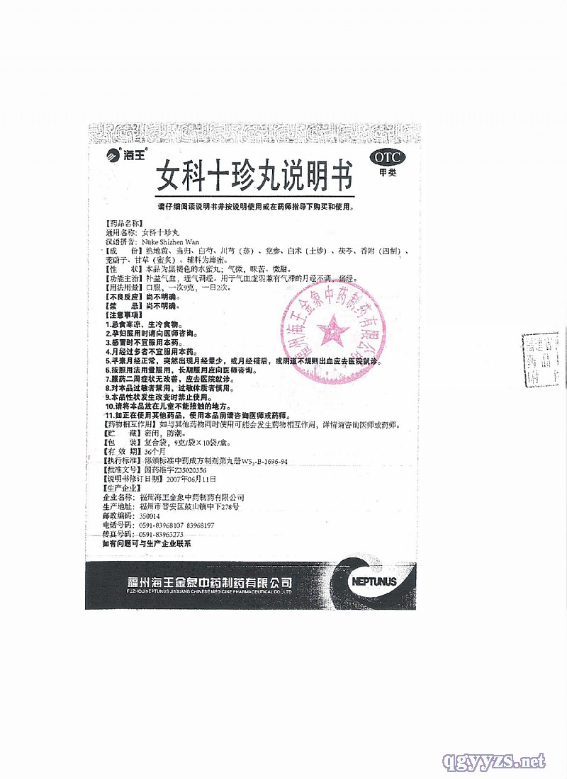 通用名稱: 女科十珍丸