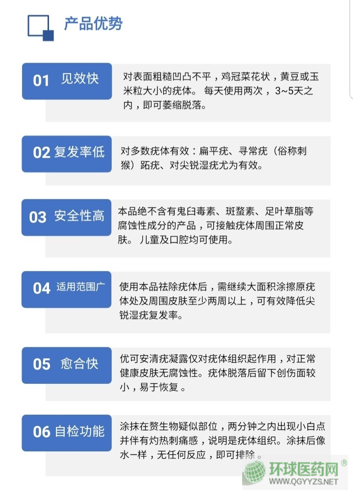 | 補充說明 | 優(yōu)無痕,醫(yī)用清疣凝露,治療尖銳濕疣,見效快,空間大 |