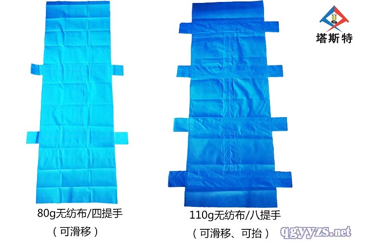 | 產(chǎn)品用途 | 產(chǎn)品組成: 本產(chǎn)品由一次性滑移墊(80g以上)、一次性中單(床單)、吸水墊(吸附液體大于2kg)構(gòu)成。 臨床使用意義: 1.不再費(fèi)神費(fèi)力: 滑移墊僅需1-2人即可將病人過(guò)床,代替原來(lái)需4-5人才能完成的工作,省力省時(shí),可以大大減輕醫(yī)護(hù)人員勞動(dòng)強(qiáng)度 2.“病人不動(dòng)式”過(guò)床: 骨折、手術(shù)后病人因?yàn)椴⊥椿蛐g(shù)后帶有引流管等,往往不能搬動(dòng)或觸碰,使用一次性滑移墊病人完全不被搬動(dòng)或觸碰,即可平穩(wěn)**地被轉(zhuǎn)移。 3.有效避免二次損傷: 以往的搬運(yùn)方法,采用多人在不同的部位、不同的用力大小抬送,病人極易感到不適,甚至還會(huì)因?yàn)榘徇\(yùn)的不恰當(dāng)方式導(dǎo)致病人損傷,滑移墊能讓病人整體過(guò)床,避免二次損傷,實(shí)現(xiàn)輕松舒適整體轉(zhuǎn)移。 使用說(shuō)明: 1.布 單 手術(shù)前將本產(chǎn)品平鋪在手術(shù)臺(tái)上,使兩側(cè)拉手位于病人肩、臀方位。將高分子吸水棉置于病人手術(shù)部位下方即可。 2.縛 帶 病人上手術(shù)臺(tái)后, |