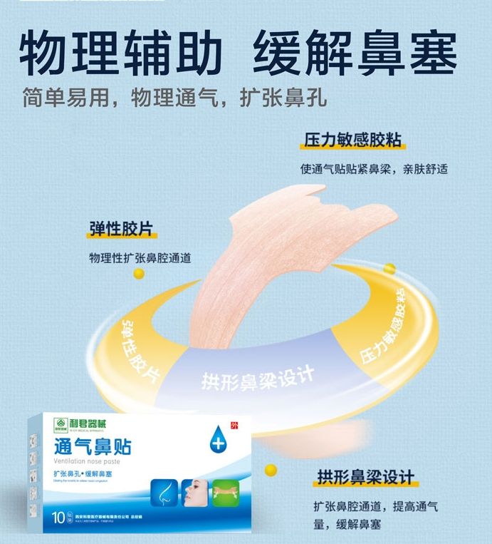 | 使用方法 | 使用本品前,須對皮膚進行清潔,撕開包裝,將本品取出,撕開背襯層,將其貼于鼻翼上方凹陷處,每片使用一次,每天使用不得超過12小時,可供睡眠、運動或白天使用。 |