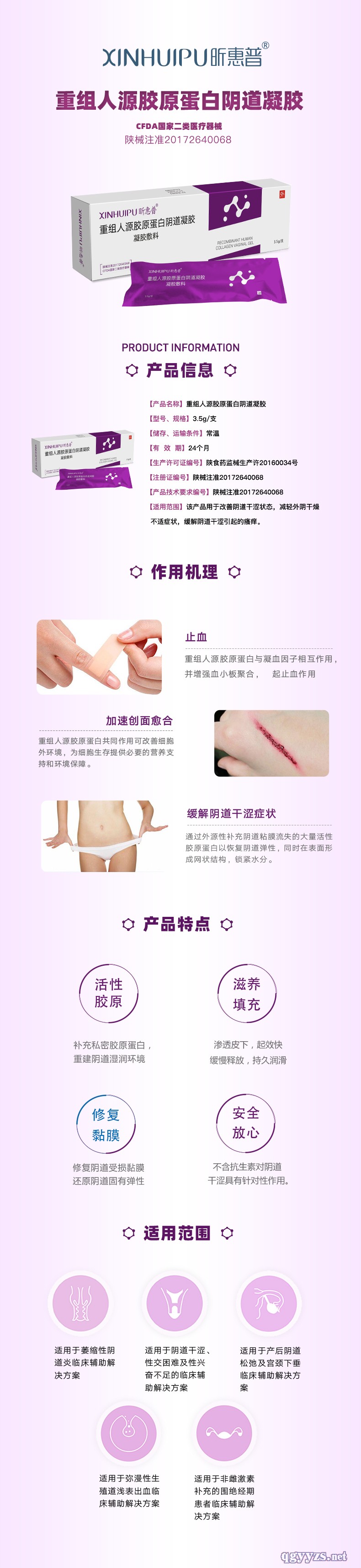 | 產(chǎn)品賣點(diǎn) | 該產(chǎn)品用于改善陰道干澀狀態(tài),減輕外陰干燥不適癥狀,緩解陰道干澀引起的瘙癢。 |