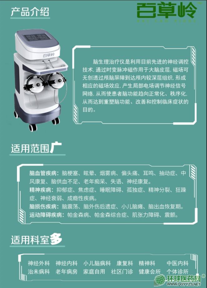 | 產(chǎn)品用途 | rTMS經(jīng)顱磁刺激應(yīng)用領(lǐng)域 1、認(rèn)知學(xué)科一用于學(xué)習(xí)能力、記憶カ、語言能力、聽力、視覺、感覺及 功能聯(lián)系的研究和應(yīng)用。 2、精神病學(xué)一用于影響前額葉背外側(cè)皮質(zhì)層的特定腦能改善 3、神經(jīng)病學(xué)一用于刺激中樞神經(jīng)和外周神經(jīng)的通路。 4、康復(fù)醫(yī)學(xué)一用于促進(jìn)腦功能和運(yùn)動(dòng)功能的恢復(fù)。 5、小兒腦損傷一用于促進(jìn)小兒腦損傷神經(jīng)細(xì)胞的再生和腦組織神經(jīng)細(xì)胞 的發(fā)育 |