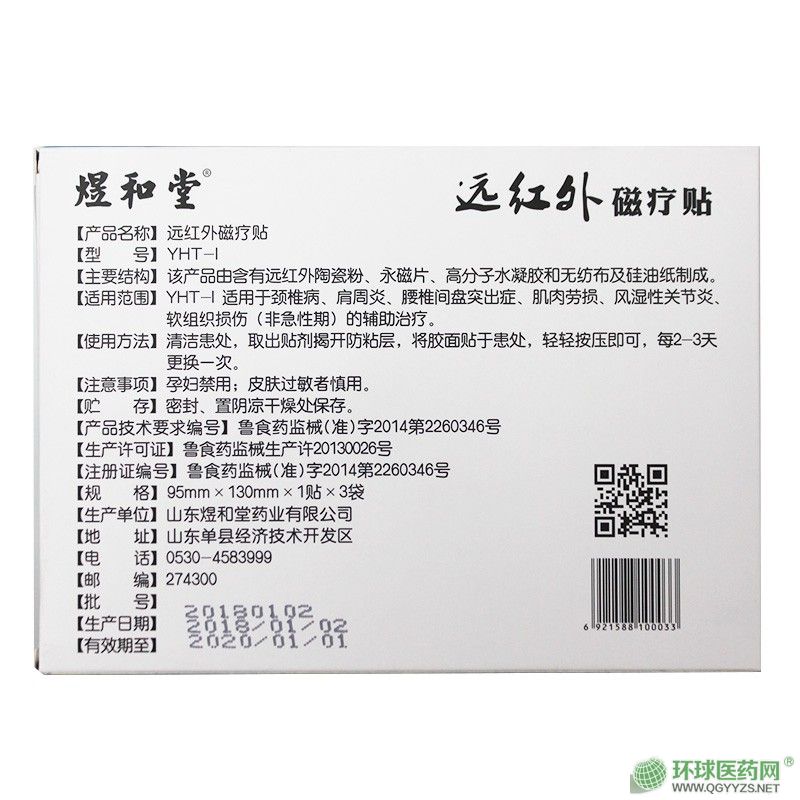 | 補充說明 | *新文號遠紅外磁療貼,遠紅外理療于磁療相結(jié)合,效果更好,可以做臨床的貼劑膏藥,山東煜和堂藥業(yè)有限公司*新貼劑產(chǎn)品,歡迎廣大朋友咨詢了解。 |