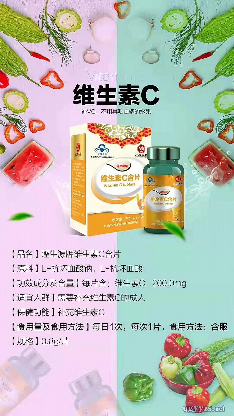 | 補(bǔ)充說(shuō)明 | 東營(yíng)廣元蓬生源牌維生素C**推薦 口感更佳,每片含Vc 200mg,含量高,性價(jià)比高。 維C市場(chǎng)需求量大,適用人群廣,成品快速出貨,可貼牌可代工。 加入我們,搶占先機(jī)! |