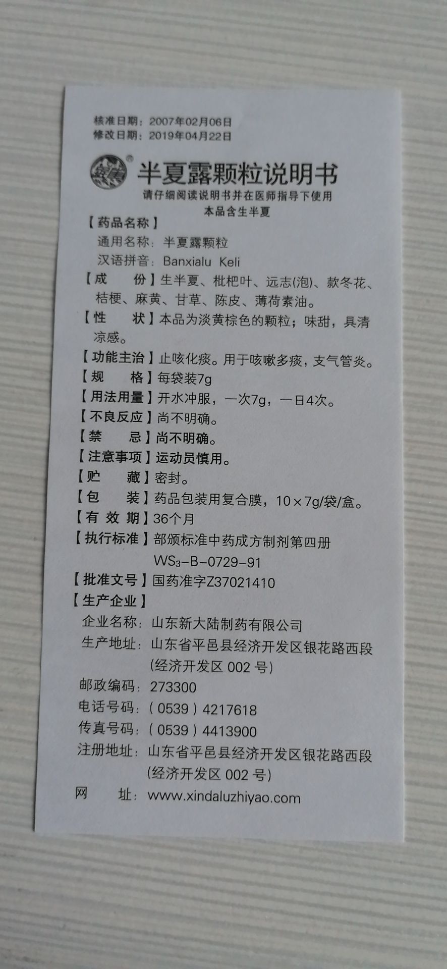 | 補充說明 | 成份:***、枇杷葉、遠志(泡)、款冬花、桔梗、麻黃、甘草、陳皮、薄荷素油。br /br /性狀:本品為淡黃棕色的顆粒;味甜,具清涼感。br /br /用法用量:開水沖服,一次7g,一日4次。 |