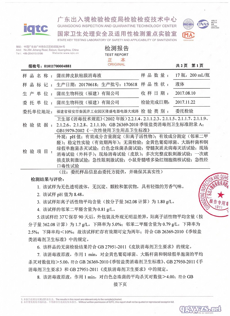 產(chǎn)品名稱: 蒲絲皮膚粘膜消毒液