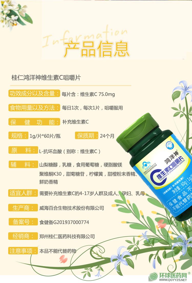 產(chǎn)品名稱: 桂仁牌鴻洋神維生素咀嚼片
