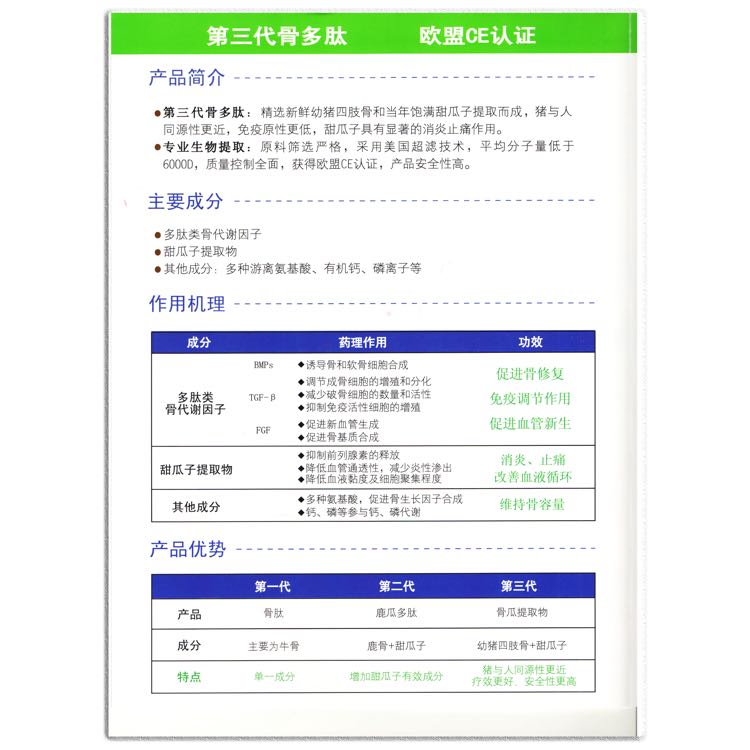 | 補(bǔ)充說明 | 新鮮或冷凍動(dòng)物四肢骨和當(dāng)年葫蘆科植物甜瓜干燥成熟種子提取物制成的無菌水溶液。 骨科、急診科、中醫(yī)科,胸外科,腦外科,整容科(頜面科),普外科,風(fēng)濕免疫科,康復(fù)科,老干部科等多科室。 |