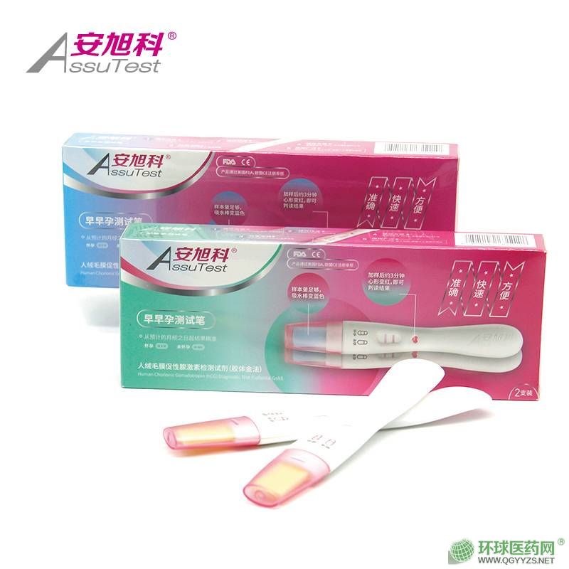 | 補充說明 | 人絨毛膜促性腺激素檢測試劑(膠體金法)說明書 【產(chǎn)品名稱】 通用名稱:人絨毛膜促性腺激素檢測試劑(膠體金法) 英文名稱:Human Chori0nic G0nadotropin (hCG) Diagnostic Test (Colloidal Gold) 【包裝規(guī)格】 筆型:1人份/盒、2人份/盒、5人份/盒。 【預(yù)期用途】 本產(chǎn)品用于定性測定尿液中的人絨毛膜促性腺激素(hCG),作為診斷早期妊娠的輔助手段。 【檢驗原理】 本產(chǎn)品用人絨毛膜促性腺激素(hCG)抗體和羊抗鼠IgG多克隆抗體分別固相硝酸纖維素膜和膠體金標(biāo)記的抗hCG單克隆抗體及其它試劑制成,應(yīng)用層析式雙抗體夾心法的原理檢測人尿液中的hCG。 檢測時,尿液標(biāo)本中的hCG與試紙條上事先包被的抗hCG單克隆抗體膠體金結(jié)合形成結(jié)合物,該結(jié)合物隨著膜的毛細(xì)管作用向上遷移到達(dá)檢測區(qū),與膜上的抗hCG單克隆抗體起反應(yīng),生成一條紅色條帶。紅色條帶的產(chǎn)生提示陽性結(jié)果,無該條帶則提示陰性結(jié)果。無論標(biāo)本中是否存在hCG,當(dāng)液面繼續(xù)遷移至固定羊抗鼠區(qū)帶(C區(qū))時,質(zhì)控區(qū)必定會出現(xiàn)一條紅色條帶,該紅色條帶作為試劑的內(nèi)控標(biāo)準(zhǔn),有助于判定樣本量是否足夠或?qū)游鲞^程是否正常。 【主要組成成分】 檢測試劑:單位寬度1cm試劑條主要原材料包含人絨毛膜促性腺激素(HCG)抗體(固定在硝酸纖維素膜上)1.2μg、羊抗鼠IgG多克隆抗體(固定在硝酸纖維素膜上) 1.5μg、膠體金標(biāo)記的抗HCG單克隆抗體(固定在聚酯纖維素膜上) 0.6μg,硝酸纖維素膜,聚酯纖維素膜,玻璃纖維)、干燥劑、一次性塑料吸管(適用于試劑板)。 【儲存條件及有效期】 原包裝應(yīng)儲存于4~30C,陰涼避光干燥處,有效期24個月。切忌冷凍或在已過有效期后使用(生產(chǎn)日期、使用期限見包裝袋)。試劑打開鋁箔袋后請立即使用(1小時內(nèi))。 【適用儀器】 本產(chǎn)品無需特殊儀器輔助使用,只需要在操作時使用*表對檢測時間進(jìn)行控制,以免判讀時間的偏差造成結(jié)果不準(zhǔn)確。筆型(“心”形)在操作時則不需要*表對檢測時間進(jìn)行控制。 【樣本要求】 尿液標(biāo)本: 尿液標(biāo)本必須收集在一個干凈,干燥的容器內(nèi)。一天之內(nèi)的尿液均可檢測,但通常晨尿中hCG濃度*高。尿樣出現(xiàn)混濁時,可通過離心或過濾取上清檢測。 尿液標(biāo)本可在檢測前于2~8℃保存48小時。如果需要延長儲存時間,可在-20℃下凍存6個月而不影響測試結(jié)果。冷凍標(biāo)本檢測前應(yīng)充分溶化、搖勻。 【檢驗方法】 在進(jìn)行測試前必須先完整閱讀使用說明書,使用前將試劑和標(biāo)本恢復(fù)至室溫(20℃~30℃)。 1.試劑條檢驗方法 1)從原包裝鋁箔袋中取出試劑,在1小時內(nèi)應(yīng)盡快地使用,特別是溫度高于30℃或在高濕度條件下。 2)以箭頭對著標(biāo)本的方向?qū)⒃嚰垪l插入尿液中,確保插入試紙條的深度低于標(biāo)志線。試紙條至少浸泡10*后,取出置于不吸水的平板上。 3)等待紅色條帶的出現(xiàn)。3分鐘后可看結(jié)果,10分鐘后判斷均無效。 2.試劑板檢驗方法 1)從原包裝鋁箔袋中取出試劑,在1小時內(nèi)應(yīng)盡快地使用,特別是溫度高于30℃或在高濕度條件下。 2)用采樣吸管吸取待檢樣品,滴加2-3滴至加樣孔。 3)等待紅色條帶的出現(xiàn)。3分鐘后可看結(jié)果,10分鐘后判斷均無效。 3.試劑筆檢驗方法 從原包裝鋁箔袋中取出試劑,在1小時內(nèi)應(yīng)盡快地使用,特別是溫度高于30℃或在高濕度條件下。 1)取下筆帽,拿住試劑筆的把柄,吸水棒端在尿流中停留10-15*,(或者把吸水棒端插入收集好的尿液中10-15*),蓋上筆帽,把試劑筆平放在臺子上; 或者取下筆帽,拿住試劑筆的手把柄,將吸水棒端放在尿流中,(或者把吸水棒端插入收集好的尿液),待吸水棒完全變藍(lán)后(約10-15*),蓋上筆帽,把試劑筆平放在臺子上; 2)等待紅色條帶的出現(xiàn)。 3)3分鐘后可看結(jié)果,10分鐘后判斷均無效。 或者待觀察窗上端心形區(qū)域出現(xiàn)紅色后,讀取結(jié)果;心形區(qū)域紅色消失后判讀視為無效。 結(jié)果判讀: 陰性(-):僅在測試條的質(zhì)控區(qū)(C區(qū))出現(xiàn)一條紅色條帶。 陽性(+):除質(zhì)控區(qū)外,在檢測區(qū)(T區(qū))也出現(xiàn)一條紅色條帶。 無效:如質(zhì)控區(qū)(C區(qū)),始終沒有紅色條帶出現(xiàn),表明試劑損壞或者操作錯誤,須重新測試。如果問題仍然存在,應(yīng)立即停止使用此批號產(chǎn)品,并與當(dāng)?shù)毓⿷?yīng)商聯(lián)系。 【陽性判斷值】 美國妊娠學(xué)會確定非孕女性尿液中0-25mIU/mL。通過對124個樣本測定結(jié)果分析,確定人絨毛膜促性腺激素檢測試劑的參考值為25mIU/mL。 由于地理、人種及年齡等差異,各實驗室應(yīng)考慮陽性判斷值的適用性。 【檢驗結(jié)果的解釋】 1.檢測區(qū)(T區(qū))的色帶顯色色強度取決于標(biāo)本中待檢測物(hCG)的濃度,當(dāng)標(biāo)本中hCG濃度較低時,T線色帶顏色會比較淺,這時候仍應(yīng)該判斷為陽性; 2.質(zhì)控區(qū)(C區(qū)),始終沒有紅色條帶出現(xiàn),表明試劑損壞或者操作錯誤,須重新測試。如果問題仍然存在,應(yīng)立即停止使用此批號產(chǎn)品,并與當(dāng)?shù)毓⿷?yīng)商聯(lián)系; 3.由于標(biāo)本中可能包含一些未知的干擾物質(zhì),可能對測