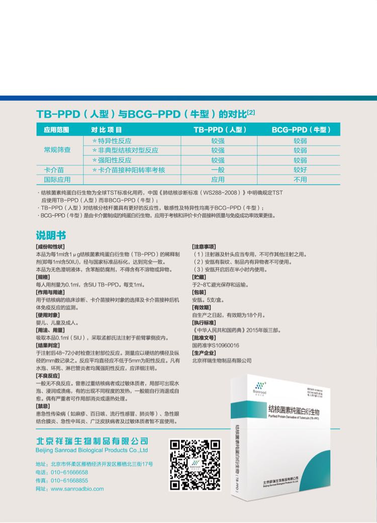 | 適應(yīng)癥 | 用于結(jié)核病的臨床診斷、卡介苗接種對象的選擇及卡介苗接種后機(jī)體免疫反應(yīng)的監(jiān)測。 |