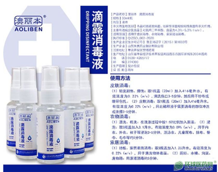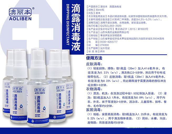 | 其它說明 | 1、使用滴露消毒液時要注意用法、用量,按比例使用效果會更好; 2、滴露消毒液只供外用,一定要稀釋后使用,任何情況下均不能吞服; 3、擱置在陰涼處保存,不要讓兒童接觸到; 4、如不慎入眼,要用清水沖洗或就醫(yī)。 |