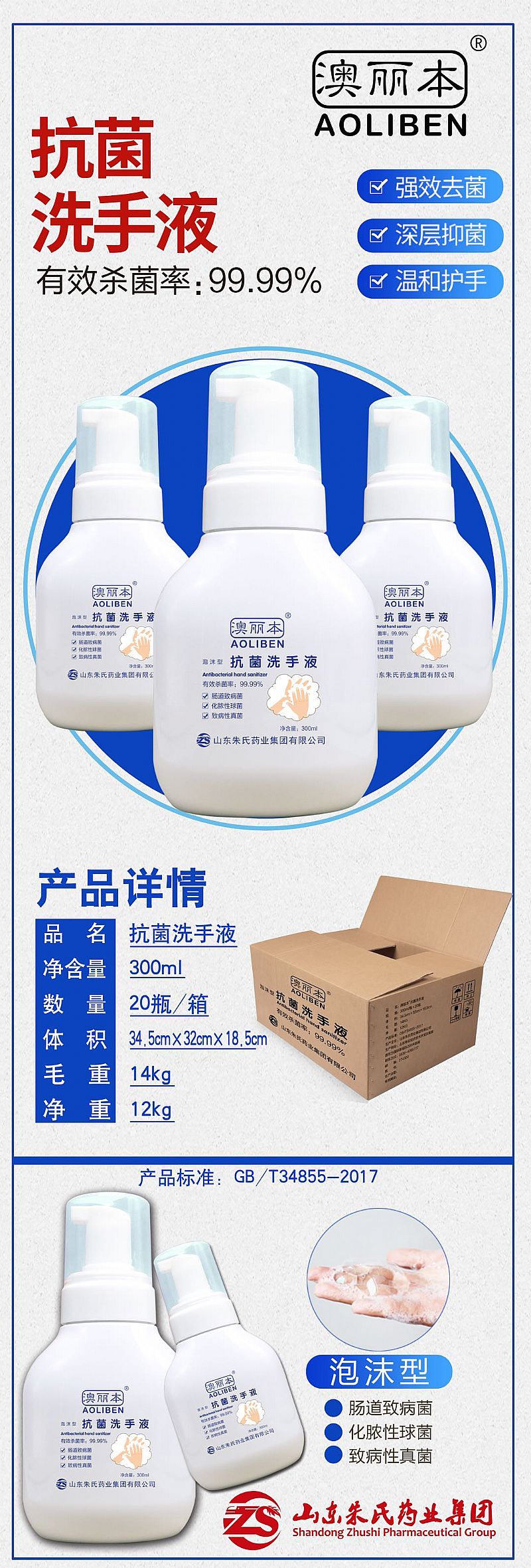 | 產(chǎn)品名稱 | 澳麗本抗菌洗手液 |
