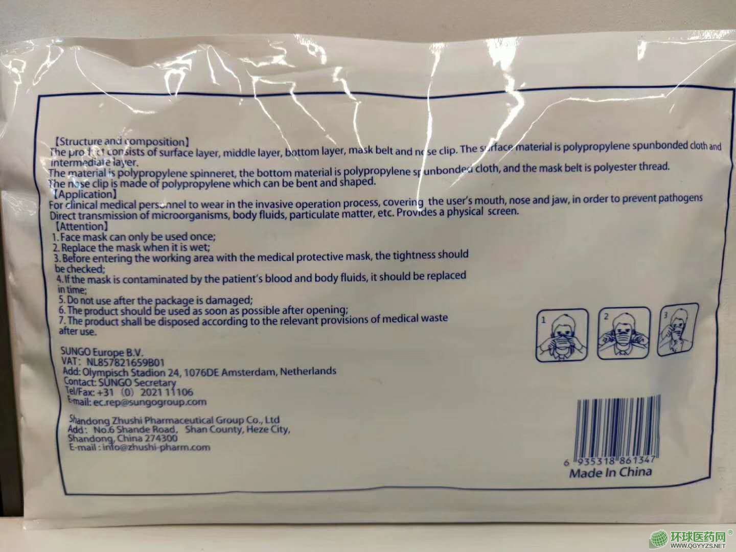 | 補(bǔ)充說(shuō)明 | 東貝一次性使用醫(yī)用外科口罩供臨床醫(yī)務(wù)人員在有創(chuàng)操作過(guò)程中佩帶,覆蓋住使用者的口、鼻及下頜,為防止病原體微生物、體液、顆粒物等的直接透過(guò)提供物理屏障。 一次性使用醫(yī)用外科口罩說(shuō)明書 【產(chǎn)品名稱】一次性使用醫(yī)用外科口罩 【商品名/商標(biāo)】東貝 【型號(hào)規(guī)格】10個(gè) 【結(jié)構(gòu)與組成】東貝一次性使用醫(yī)用外科口罩由表層、中間層、底層、口罩帶、鼻夾組成,表層材料為聚丙烯紡粘布、中間層材料為聚丙烯噴絲法制成的過(guò)濾熔噴布、底層材料為聚丙烯紡粘布、口罩帶為滌綸線和少量氨綸線針織而成、鼻夾為可彎折可定型的聚丙烯制成。 【適用范圍】供臨床醫(yī)務(wù)人員在有創(chuàng)操作過(guò)程中佩帶,覆蓋住使用者的口、鼻及下頜,為防止病原體微生物、體液、顆粒物等的直接透過(guò)提供物理屏障。 【生產(chǎn)廠家】山東朱氏藥業(yè)集團(tuán)有限公司 【注冊(cè)證號(hào)】魯械注準(zhǔn)20192140064 【生產(chǎn)地址】單縣開(kāi)發(fā)區(qū)樊樓路南 【條形碼】6935318861002 |