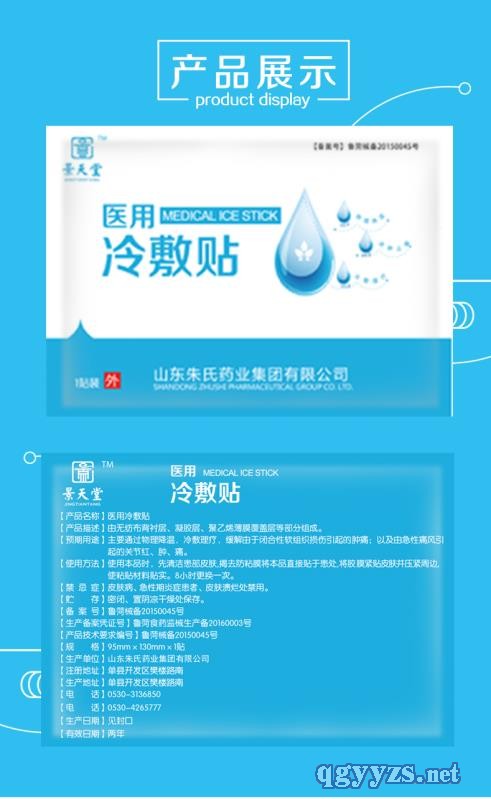| 產(chǎn)品賣點 | 主要通過物理降溫,冷敷理療,緩解由于閉合性軟組織損傷引起的腫痛;以及由急性痛風(fēng)引起的關(guān)節(jié)紅、腫、痛。 |