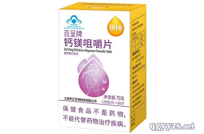產(chǎn)品名稱: (貝純?cè)袐D裝)百呈牌鈣鎂咀嚼片