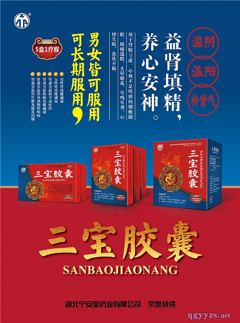 | 產(chǎn)品賣點 | 1、三寶膠囊由多種名貴中藥材萃取而成,配伍合理,一補一斂,達到補益腎臟的作用; 2、三寶膠囊具有預(yù)防睪丸萎縮,保持睪丸活力,延緩睪丸微細結(jié)構(gòu)改變,具有抗衰老的作用; 3、三寶膠囊是強有力的補腎復(fù)方中藥制劑,同時具備滋陰、溫陽、補腎氣三重功能,,5盒為一個療程,療程用藥效果更佳! 4、三寶膠囊使用人群廣泛,男女皆可使用,可長期服用,能促進血**水平提高,加快腎臟疾病的恢復(fù)! |