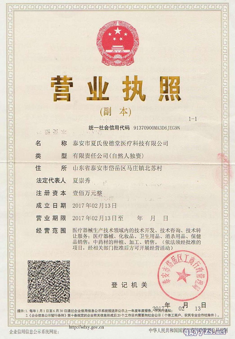 招商企業(yè): 泰安市夏氏俊德堂醫(yī)療科技有限公司
