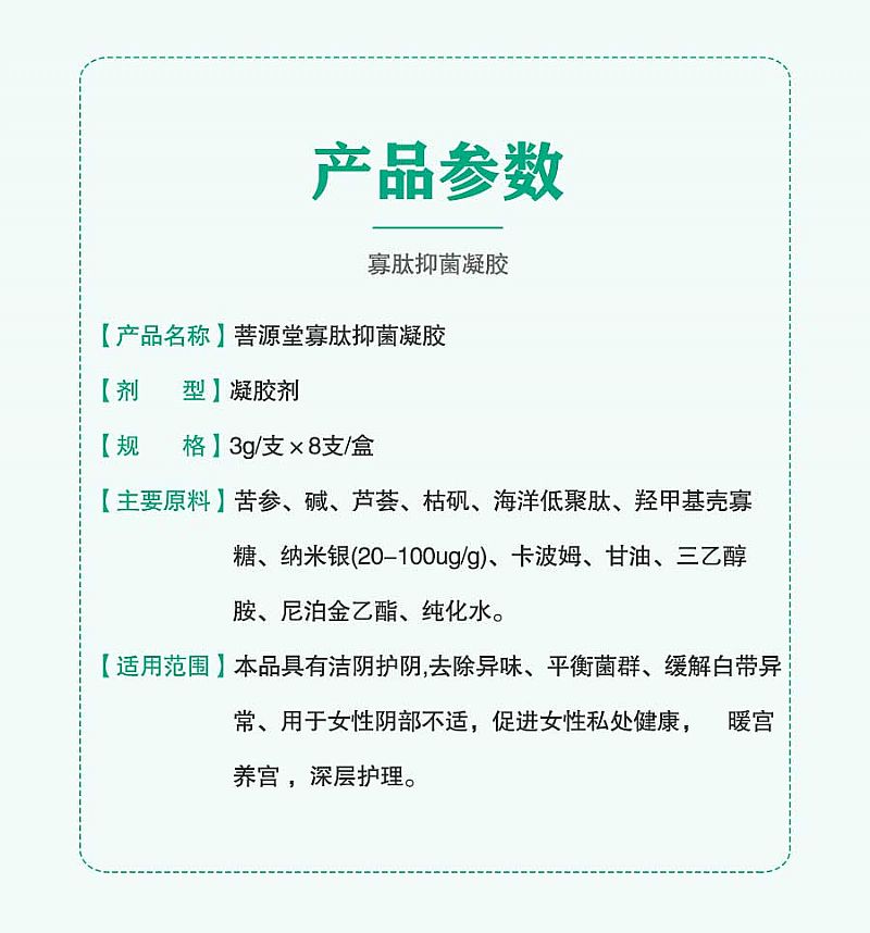 | 產(chǎn)品名稱 | 菩源堂牌寡肽抑菌凝膠 |