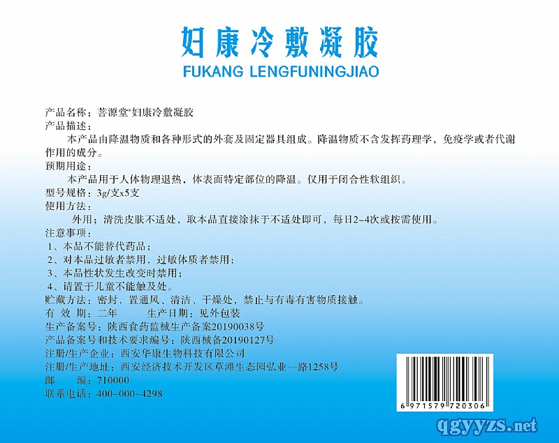 產(chǎn)品名稱: 菩源堂牌婦康冷敷凝膠