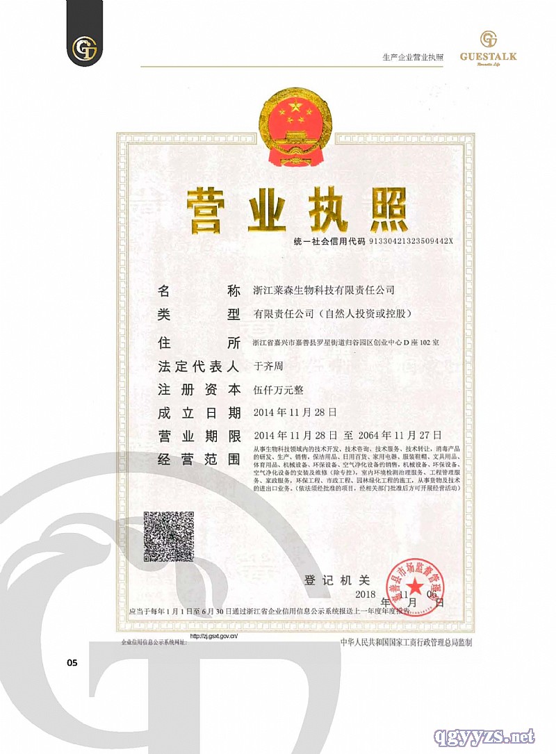 生產(chǎn)企業(yè): 浙江萊森生物科技有限責(zé)任公司