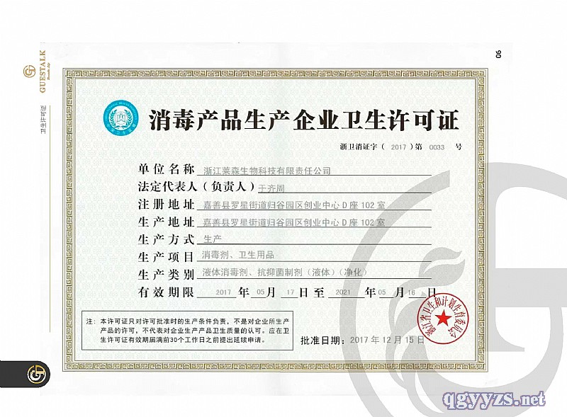 批準(zhǔn)文號(hào): 浙衛(wèi)消證字2017第0033號(hào)