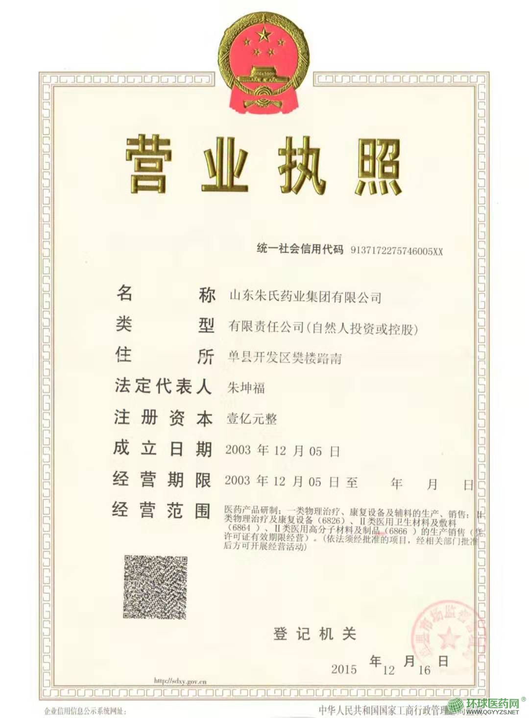 生產(chǎn)企業(yè): 山東朱氏藥業(yè)集團(tuán)有限公司