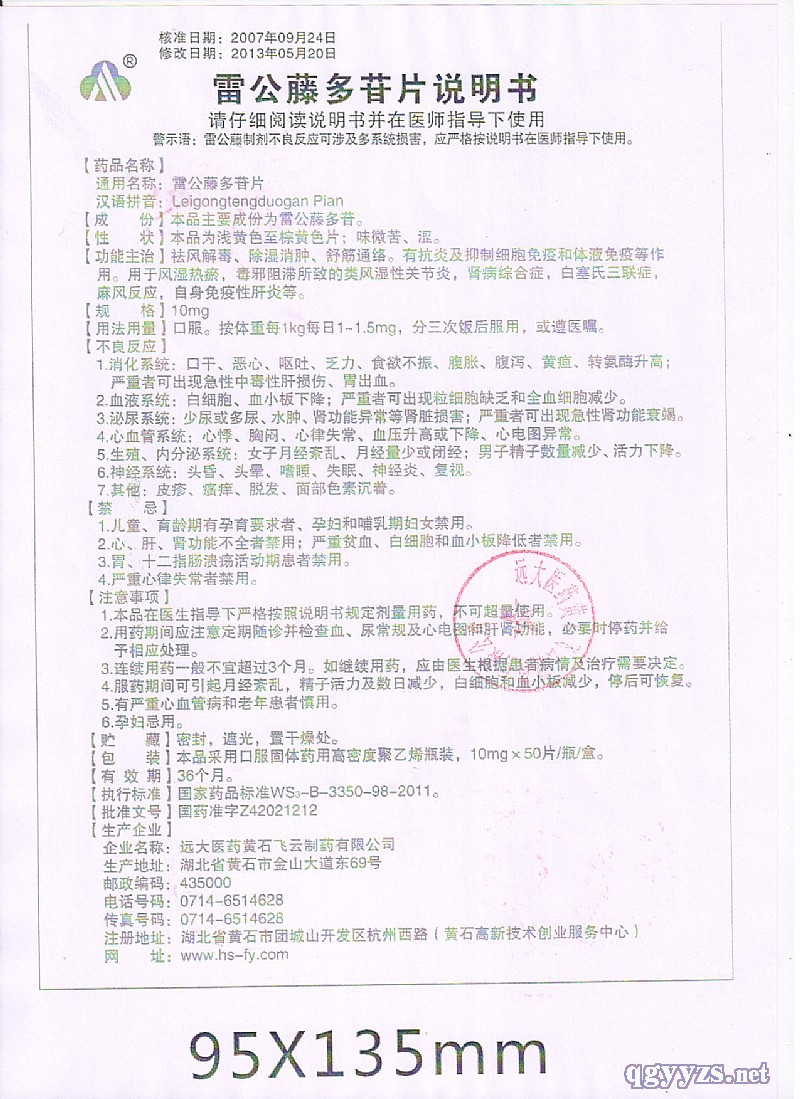 | 補充說明 | 國家醫(yī)保甲類品種,國家中西醫(yī)結(jié)合學會推廣臨床用藥品種。雷公藤多苷片是一種常用于治療風濕性疾病的中成藥,主要成分提取自雷公藤植物,具有祛風除濕、活血通絡(luò)、消腫止痛、殺蟲解毒等功效。具體來說,它能幫助祛除體內(nèi)風濕邪氣、改善血液循環(huán)、減輕關(guān)節(jié)腫脹疼痛,同時還具有抗炎效果,能夠調(diào)節(jié)免疫系統(tǒng)功能,對過度活躍的免疫反應(yīng)有抑制作用。臨床主要用于以下幾種病癥的治療:風濕熱瘀、毒邪阻滯引發(fā)的類風濕關(guān)節(jié)炎(主要表現(xiàn)為關(guān)節(jié)紅腫熱痛、活動受限);腎病綜合征(典型癥狀包括水腫、蛋白尿);白塞。ǹ谇粷、生殖器潰瘍和眼部炎癥等);麻風反應(yīng)(麻風病治療期間出現(xiàn)的皮膚結(jié)節(jié)、神經(jīng)痛等免疫反應(yīng));自身免疫性肝炎(由免疫系統(tǒng)攻擊肝臟引發(fā)的慢性肝炎)。同時,其抗炎特性和免疫調(diào)節(jié)功能在上述疾病的治療過程中起到關(guān)鍵作用。 |