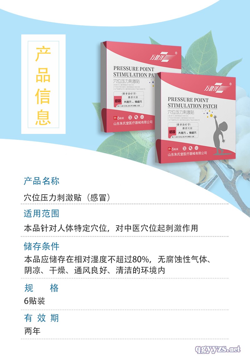 | 補充說明 | 【注意事項】1.僅限一次性使用,用后銷毀;2.叮囑患者定時按壓,按壓不能過度用力,以不損傷皮膚為宜;3.無粘性、包裝破損或過有效期禁止使用;4.夏季多汗,宜勤換;5.敷貼后有過敏等不適應(yīng)停止敷貼。 【慎 用】糖尿病、高熱患者。 【儲存條件】本產(chǎn)品應(yīng)貯存在相對濕度不超過80%,無腐蝕性氣體、遮陽、干燥、通風(fēng)良好、清潔的環(huán)境內(nèi)。 |