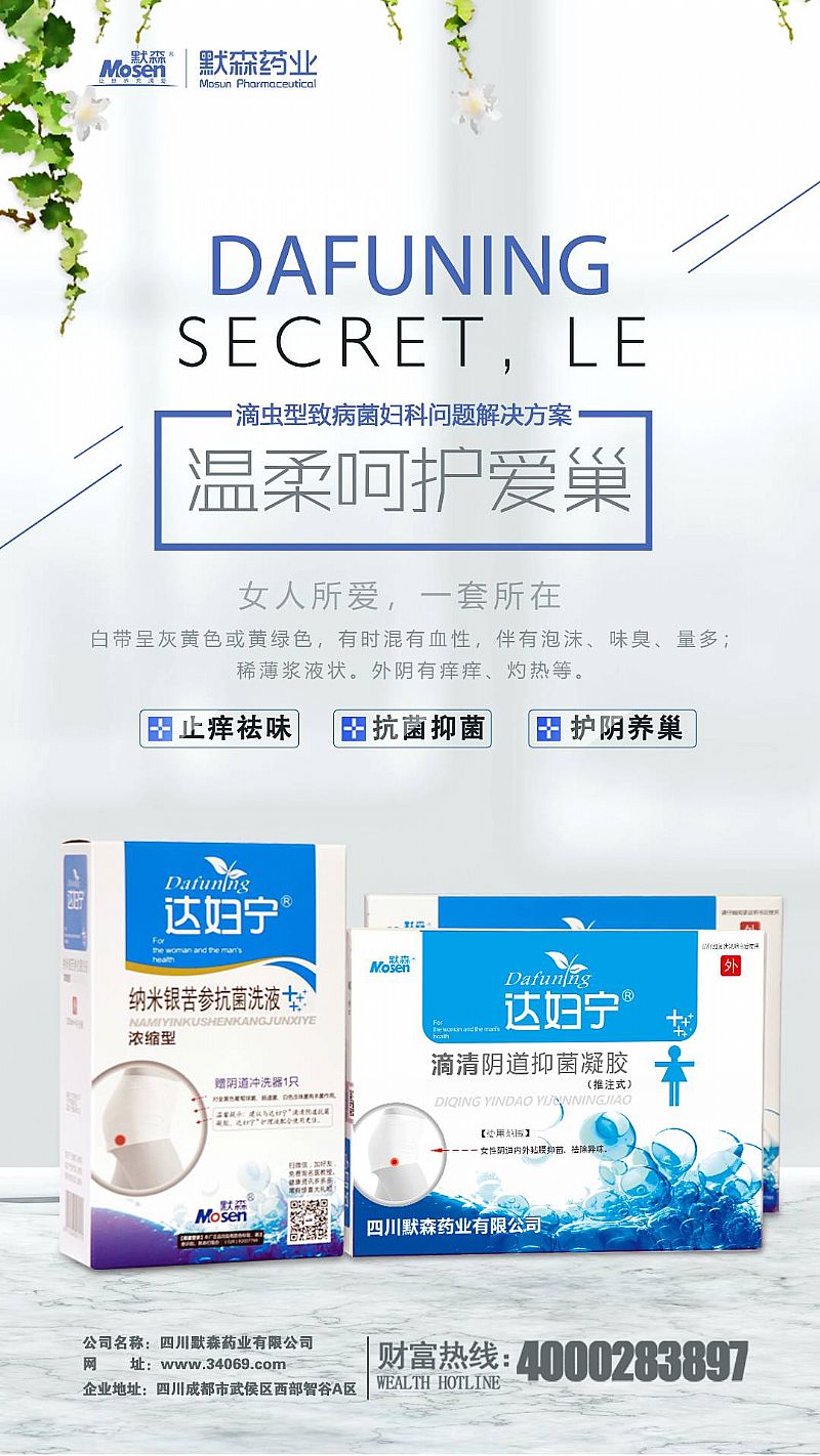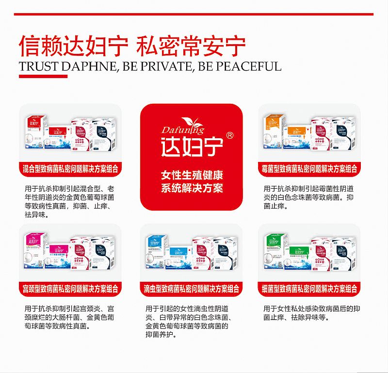 | 其它說明 | 達(dá)婦寧優(yōu)勢:5個系列,針對5種不同婦科問題,產(chǎn)品都是搭配好的(洗的、陰道凝膠、護(hù)理保養(yǎng)),能有效提升客單價及門店毛利率,專業(yè)的精準(zhǔn)洗護(hù)**品牌。達(dá)婦寧系列也比較復(fù)合女性心理消費需求(女性購買的護(hù)膚品,有水乳霜,而且都是一個品牌,私處對于女性來說相當(dāng)于第二張臉,其實都很看重) |