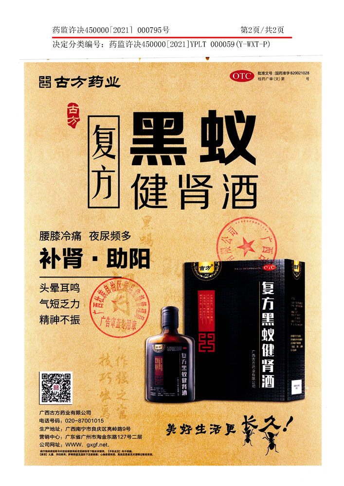 | 通用名稱 | 復(fù)方黑蟻健腎酒 |