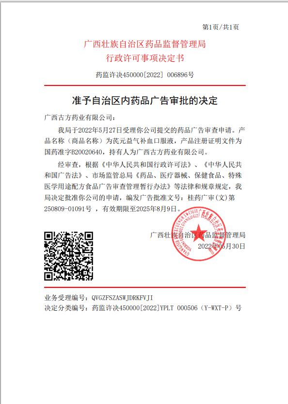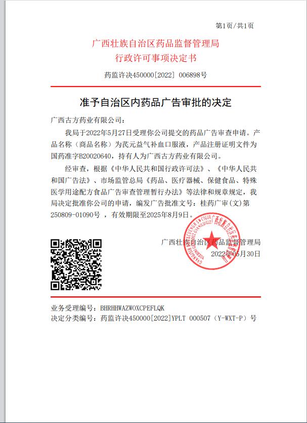生產(chǎn)企業(yè): 廣西古方藥業(yè)有限公司