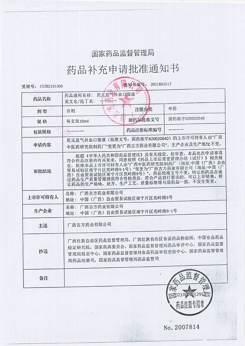 | 藥品上市許可持有人 | 廣西古方藥業(yè)有限公司 |