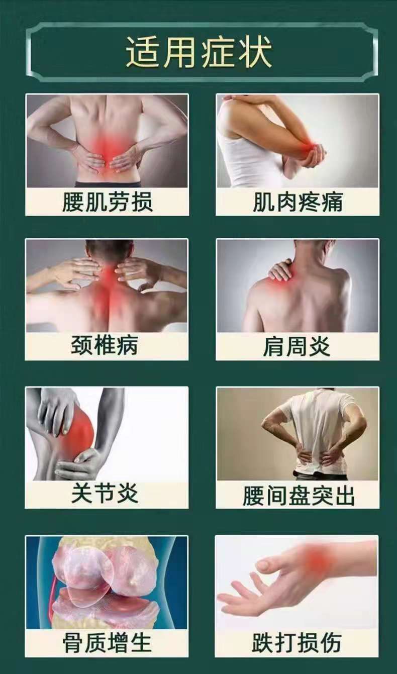 | 產(chǎn)品用途 | 成分:由降溫物質(zhì)和**形式的器具組成。大艾草葉、紅花、川穹、九里香、當(dāng)歸,紫金皮、赤芍藥、乳香。 適用范圍:適用于筋骨不適引起的頸椎病、肩周炎、關(guān)節(jié)炎、腰椎突出增生、腱鞘炎、滑膜炎、腰肌勞損、肌肉拉傷、跌打損傷、風(fēng)濕、類風(fēng)濕等癥狀的降溫。使用方法:涂抹于疼痛部位,一天1-2次 |